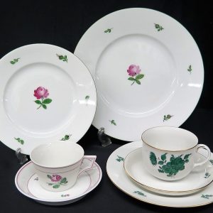 この度は日晃堂の食器買取サービスをご利用いただき、誠にありがとうございました。今回はアウガルテンの人気シリーズ、「マリアテレジア」をお買取りさせていただきました。