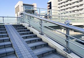 中央改札から出ると左手に歩道橋が見えますので、そちらへ直進します。