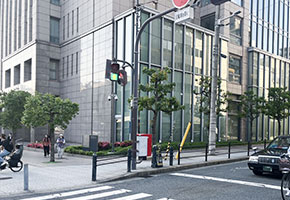 右手に三菱UFJ銀行 谷町ビルが見えてきます。