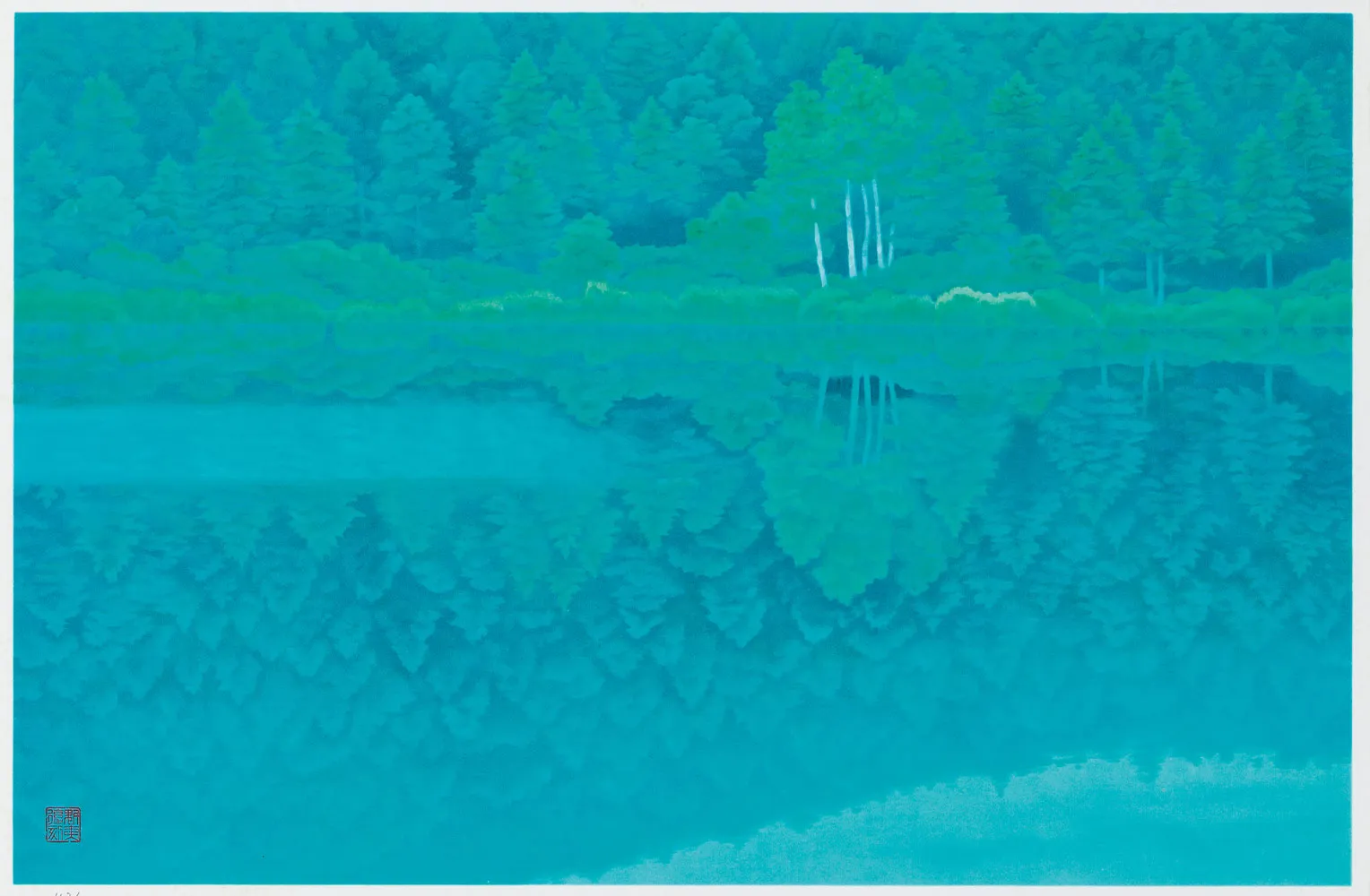 「緑映」は東山魁夷の代表作の一つであり、自然の美しさを静謐をもって表現されており、絵画として広く評価されています。この作品は、彼が得意とする風景画の技法と感性が存分に発揮されており、自然の静けさと生命力を感じさせます。
