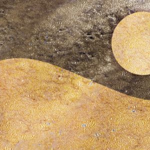 シルクロードを通ってインドから仏典を持ち帰る、玄奘三蔵の姿が幻想的なタッチで表現された作品です。平山郁夫は被曝の後遺症から、死と隣り合わせの毎日を過ごす中、「死ぬまでに1作でいいから平和を祈る作品を残したい」という思いでこの作品を制作しました。この作品が連作「シルクロード」シリーズの元となります。平山郁夫の原点とも言える作品です。