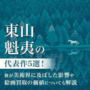 特徴としては幻想を盛り込んだ静謐な風景を描き、「東山ブルー」とも呼ばれる青や緑を得意としています。日本画と西洋画の両方学んだ東山魁夷は、日本画の平面性も残しつつも西洋画の立体感、奥行きを感じる画を描きます。