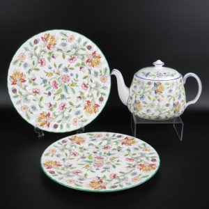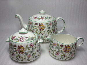 ミントンの食器といえば、いくつかのシリーズが出ていますが、その中で最も有名だといっても過言ではない、「ハドンホール」のティーセットをお買取りさせていただきました。