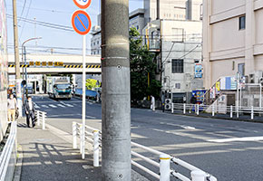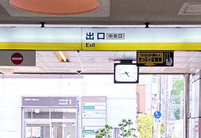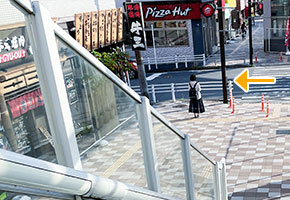 中央改札から出ると左手に歩道橋が見えますので、そちらへ直進します。