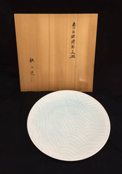 福井県勝山市にお住いのお客様より、塚本快示作青白磁唐草文皿をお買取りしました。底面に微かな黒い擦れの汚れがありましたが、その他は共箱も併せて非常に美品だったため、高額にて買取させていただきました。塚本快示作品なら日晃堂にぜひおまかせください。