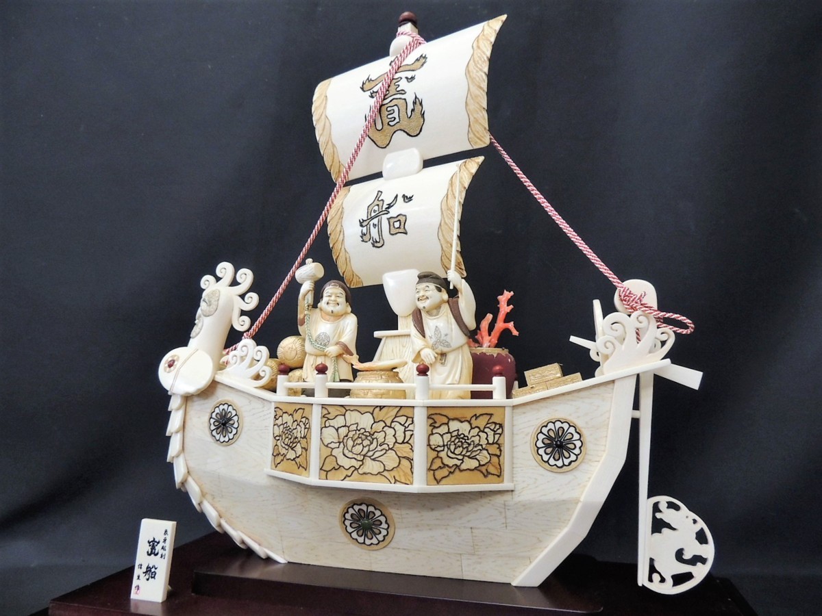 今回は象牙の置物である宝船をお買取させていただきました。 経年劣化等はありますが、丁寧に保管されていたためこちらの買取価格となりました。 日晃堂では独自の研修を経た査定士が、象牙の置物などのお品物をしっかりと査定いたします。 気になるお品物などがありましたら、お気軽に日晃堂へご相談ください。
