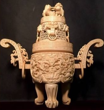蓋に獅子が彫られた三足香炉をお買取させていただきました。